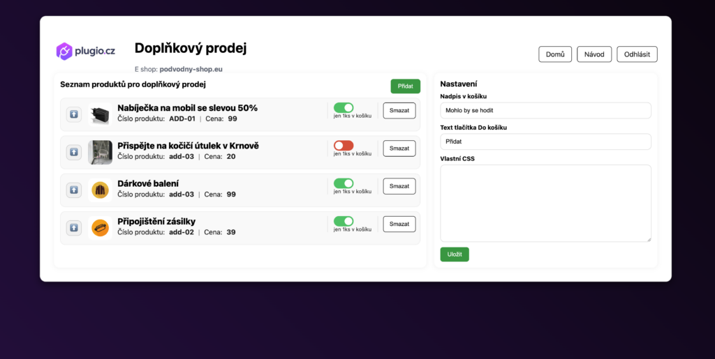 Právě na upsell sází nový doplněk Doplňkový prodej v košíku od tvůrců z Plugio.cz, který nyní najdete v naší knihovně aplikací.