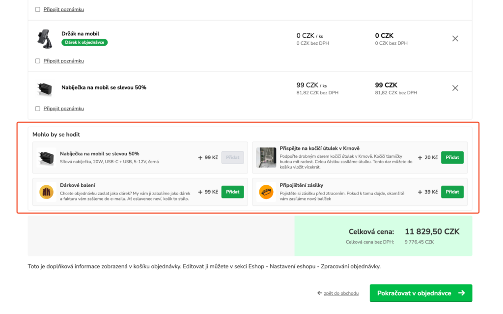 Nákupní košík je v e-commerce zvláštní místo. Zákazník už má vybráno, mentálně už se vidí u platební brány a poslední, co v tu chvíli chce, je absolvovat další složité kolečko rozhodování. Zároveň je to ale přesně ten moment, kdy mu můžete nabídnout drobnou službu nebo produkt, který mu udělá radost a vám bezbolestně zvýší marži.
