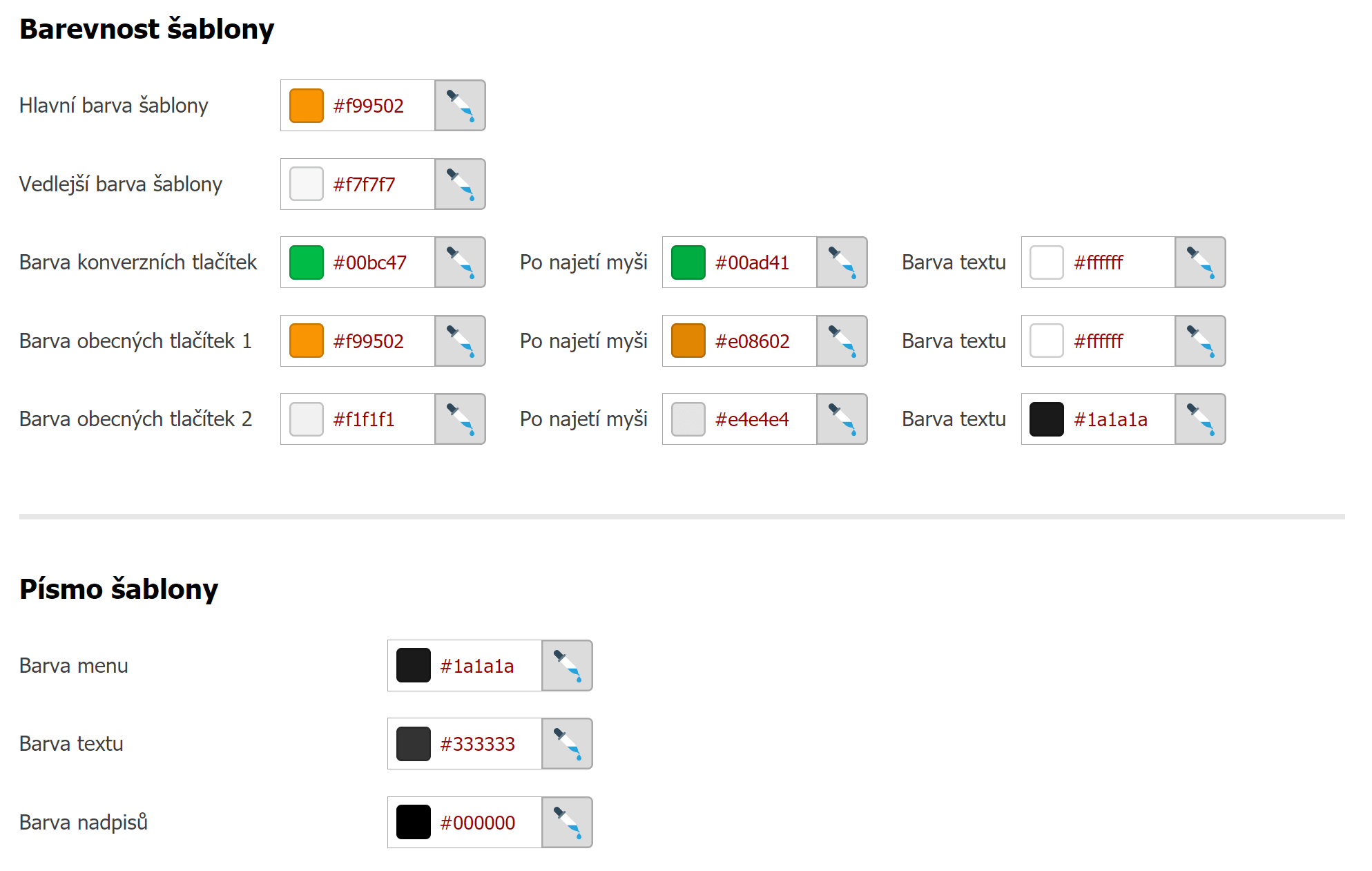 - Rozšířený editor šablony – Editor šablony New York obsahuje všechny možnosti nastavení, které obsahovaly doposud dostupné designy a k tomu všemu navíc modul pro nastavení vlastní barevnosti šablony. Mimo hlavní barvy šablony si můžete sami podbarvit například menu nebo jednotlivá tlačítka a jejich texty, které web obsahuje. K dispozici je samozřejmě i nabídka pro reset do továrního nastavení, kdyby se představivost zvrhla 😛