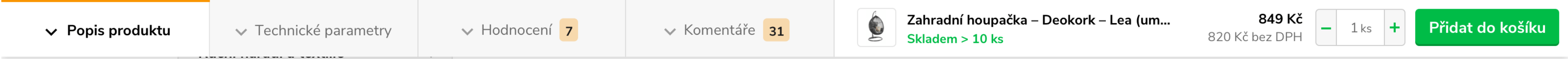 - Fixní lišta v detailu produktu – Pokud scrollujete v detailu produktu až pod nákupní tlačítko, zobrazí se v horní části stránky lišta, která obsahuje odkazy na jednotlivé části detailu produktu, ale i hlavní informace o produktu včetně nákupního tlačítka.Uživatel tedy nebude muset scrollovat až nahoru, pokud ho produkt zaujme, aby ho zakoupil, ale má navigaci i nákupní tlačítko na dosah.