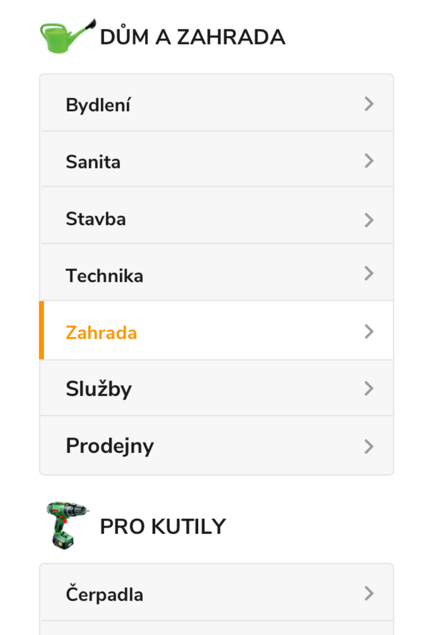 - Ikonky pro menu – V nastavení každé e-shopové kategorie (Eshop – Kategorie produktů – nastavení konkrétní kategorie) lze zadat obrázky sekce. Ty se po nahrání zobrazí v levém menu a jako rozcestník v obsahové části nadřazených sekcí.