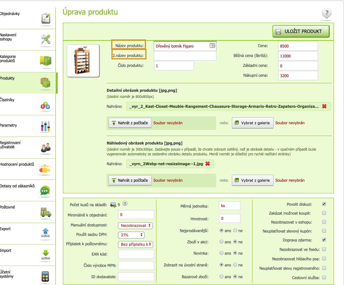 Zde si ukážeme, co je dobré mít vyplněné při vytváření/upravení produktů.