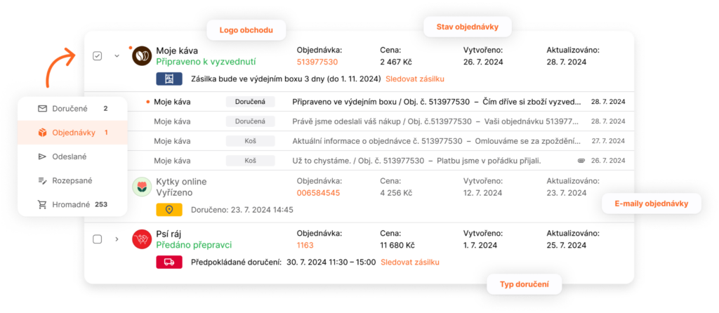 Představte si, že vašemu zákazníkovi dorazí potvrzení objednávky nebo info o odeslání. V Seznam E-mailu se mu místo pouhého předmětu zprávy zobrazí přehledná interaktivní karta. Ta obsahuje: